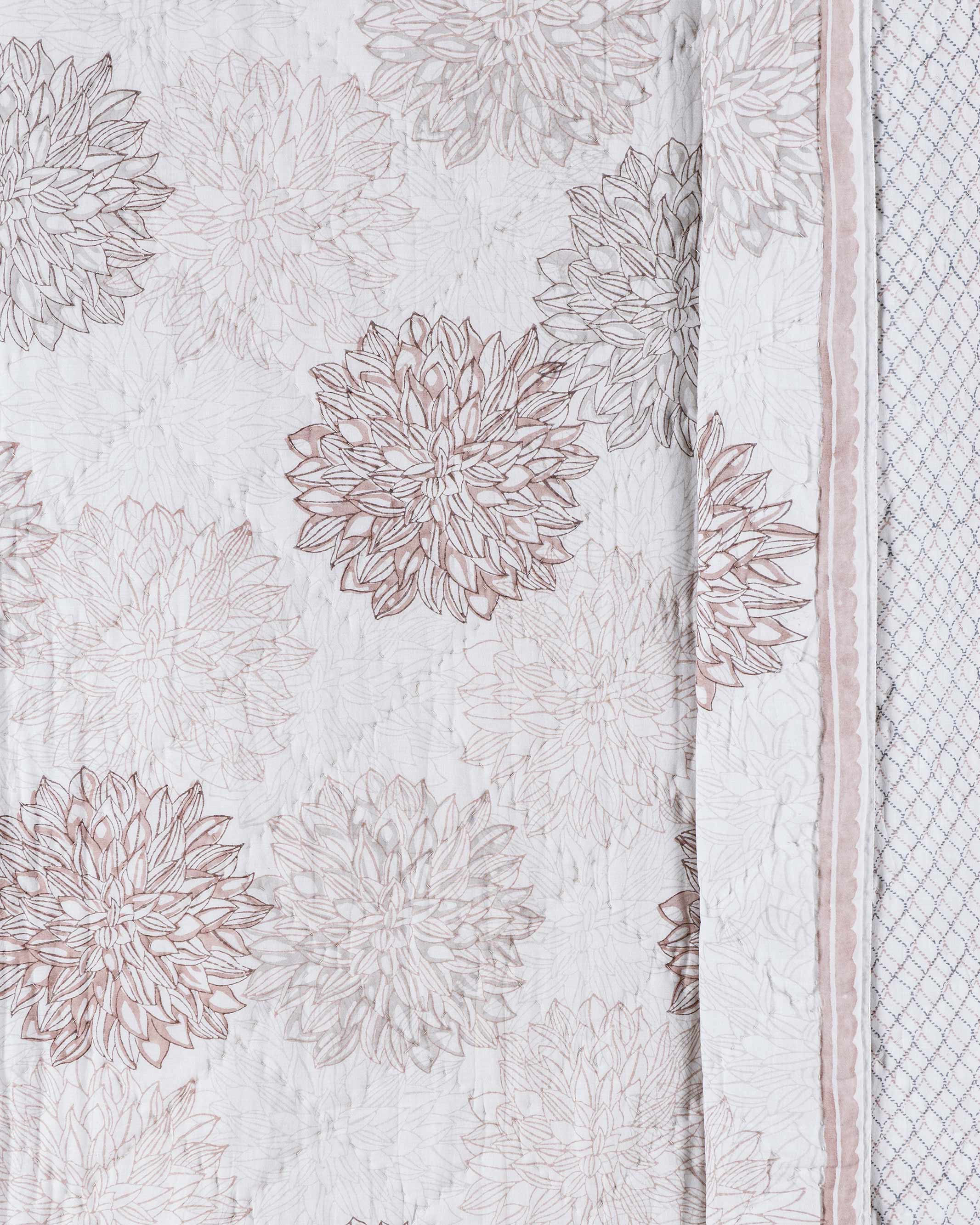 | Description | When soft muslin, pristine cotton and delicate hand quilting come together, one gets the perfect Jaipur quilt, known for its light weight quality the world over. Beautifully hand printed on fine cotton voile, each of our quilts is finished with a piping and a coordinated back. Machine washable. |