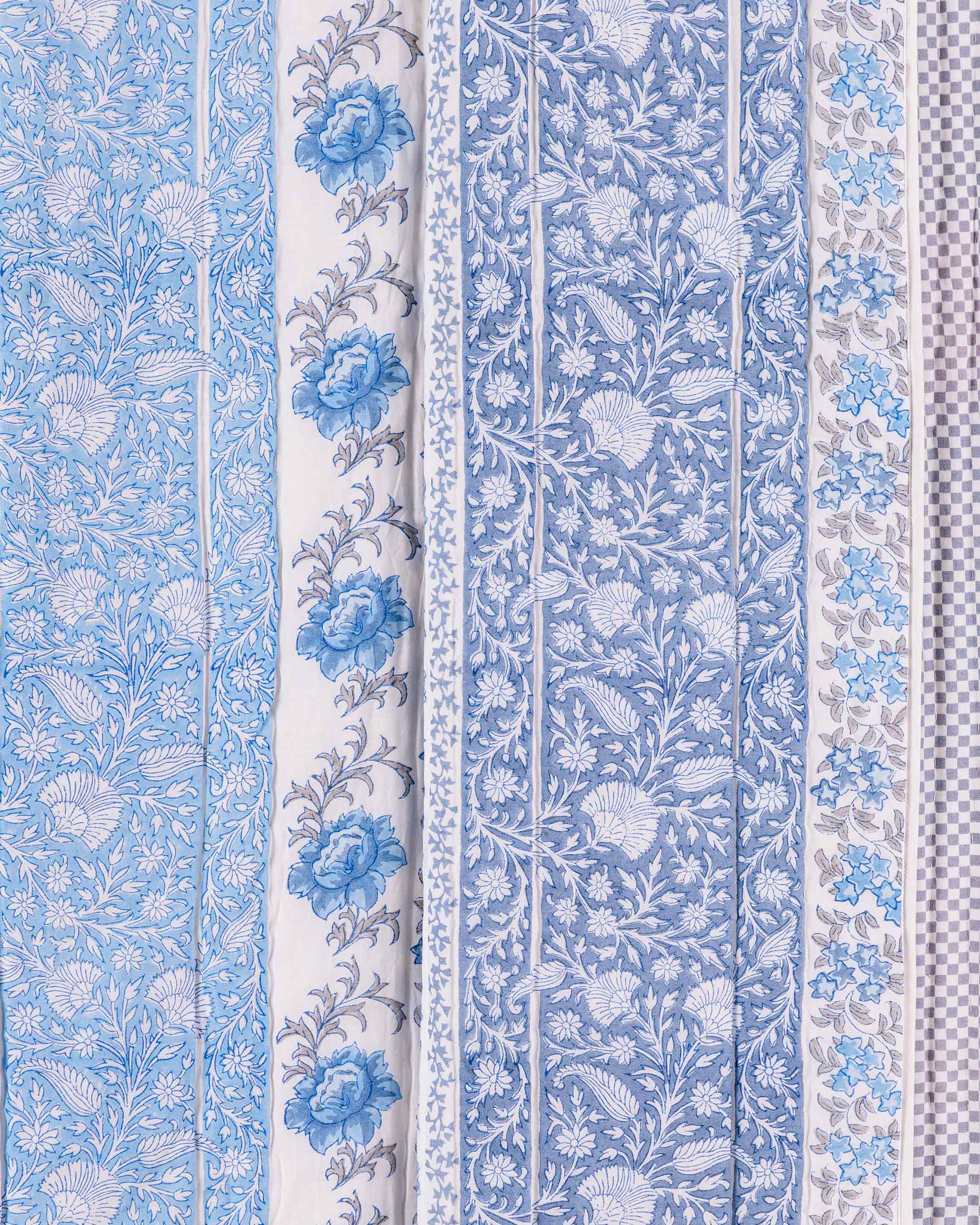 | Description | When soft muslin, pristine cotton and delicate hand quilting come together, one gets the perfect Jaipur quilt, known for its light weight quality the world over. Beautifully hand printed on fine cotton voile, each of our quilts is finished with a piping and a coordinated back. Machine washable. |